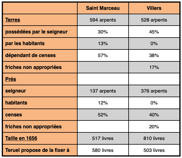 La période suivante confirmera que les terroirs de Saint Marceau et de Villers ne formèrent jusqu'au XIVe siècle qu'un seul fief. Mais déjà le texte de la bulle permet de remarquer que tandis qu'il est question pour Villers outre l'église d'un four banal, de Saint Marcel on ne cite que la dîme. Si Saint Marcel avait existé alors qu'a été constitué Villers, à l'époque gallo-romaine, il y aurait eu deux fiefs distincts. Sinon le four banal aurait été situé près du groupement d'hommes le plus nombreux, marqué par l'église principale. Or en 1176, la chapelle de Villers n'est que la succursale de celle de Saint Marcel. L'anomalie s'explique facilement si la colline de Saint Marcel a été défrichée sous l'impulsion des moines avant d'être annexée par le seigneur laïque voisin.