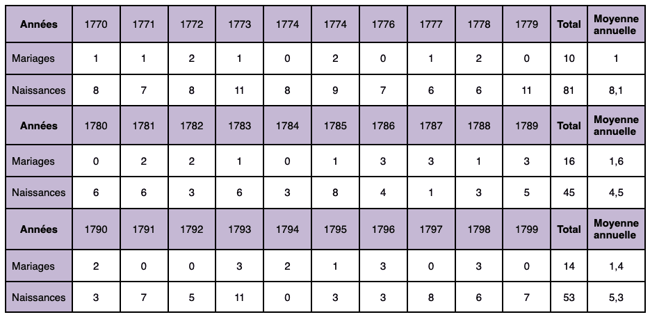 Chez les artisans la diversification des métiers est plus grande; on voit apparaître tailleur d'habits, couturière, fileuse de laine, sabotier, ferronnier. Mais maîtres d'école, sages-femmes, bergers, meuniers continuent à venir de villages voisins.